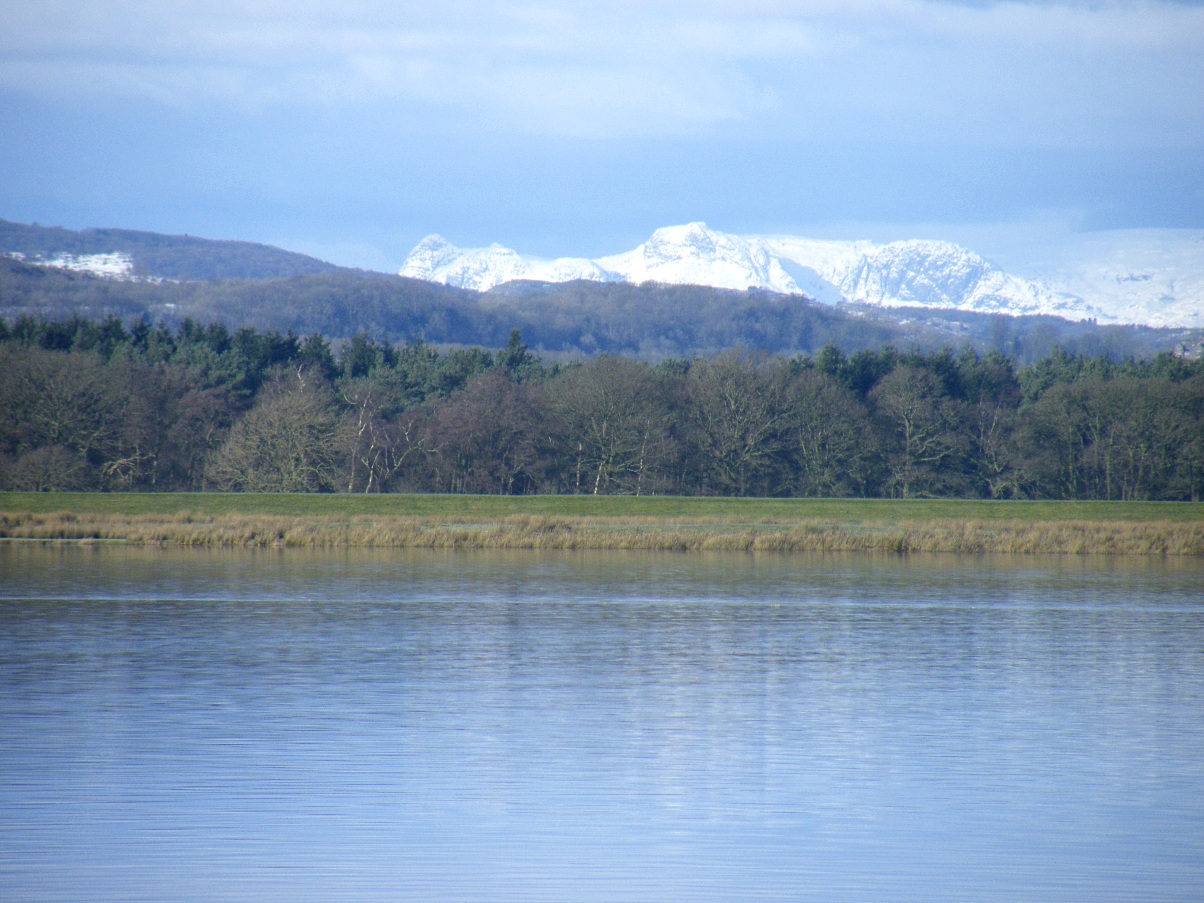 The Safari had a Peregrine over the garden early this morning while we chomped into a bowl of Shreddies (other flattened malty square shaped cereals are available), no bacon butties today as a hearty pub lunch was in order after a bit of a wander through the woods at the northern end of Safari-land. The motorway drive up there gave us six Buzzards and three Kestrels. When we arrived our friends pointed pointed out the snow on the hill tops over the estuary - Yikes hadn't seen that on the drive up. It wasn't quite like this pic from this time last year but there was a heavy smattering down to about 2000 feet.