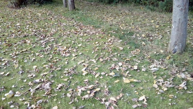 The Safari is still being thwarted by this n that. Monty's illness is a bad case of full-blown Kennel Cough which means he can't meet other dogs for at least until next weekend, so we've had to take him out very early in the morning and when other dogs are less likely to be about for fear of him infecting others. One one of our mid-afternoon walks before the schools come out we came across the first lot of kickable leaves of the autumn. Not many but it's the start - how great is it to hear that crunch of dry leaves underfoot, one of the 'significant' sounds of the advancing year.