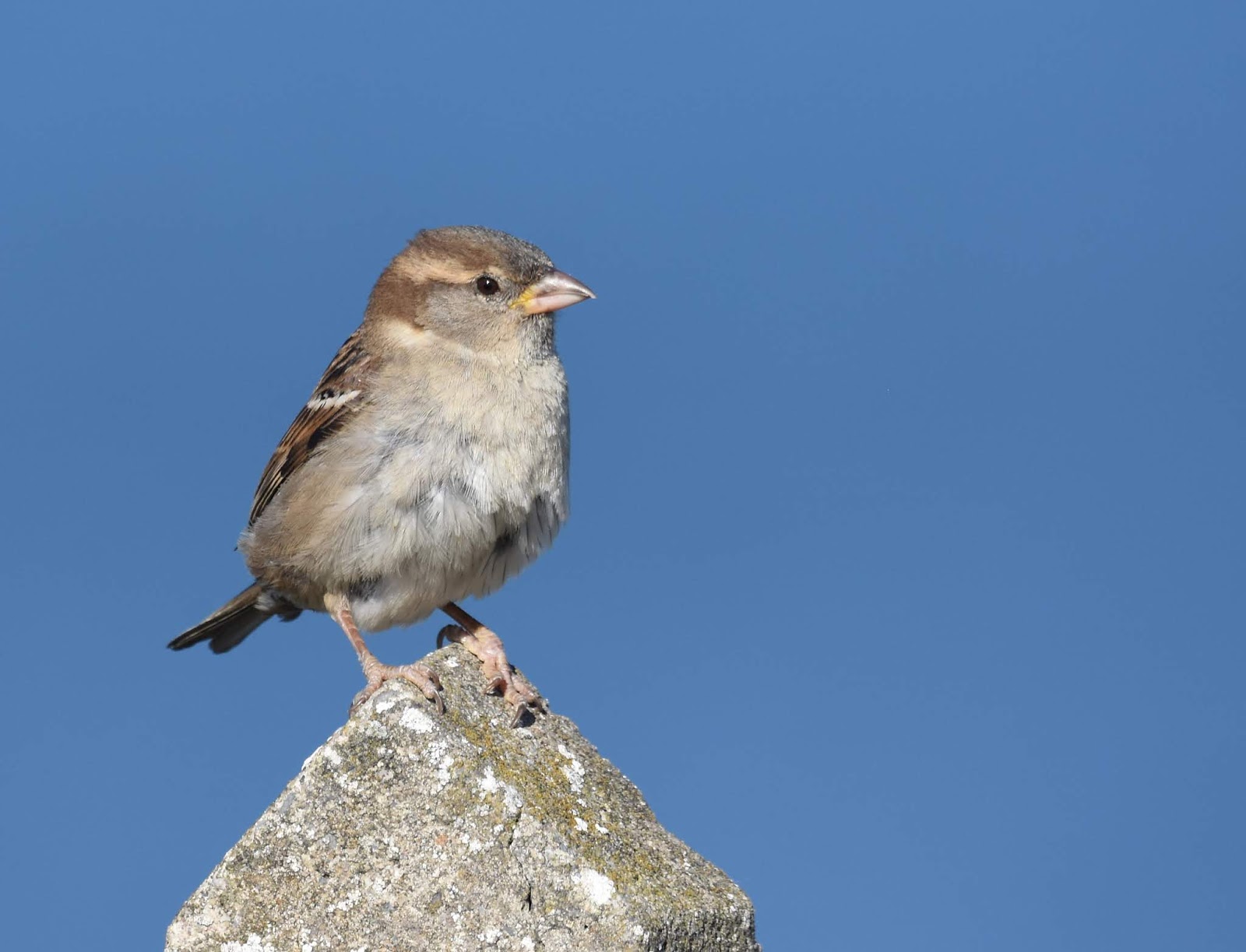 As dusk fell we had our first House Sparrow on the new millet feeder in the back garden. Probably the same male that came a couple of times when the feeder dispensed suet pellets but hasn't been seen since. All we need now is for it to come back during the day to have his photo taken, and we'd be quite happy for him to bring his family along too - we need them - - we jumped in with both feet and got 17kg of red millet delivered.